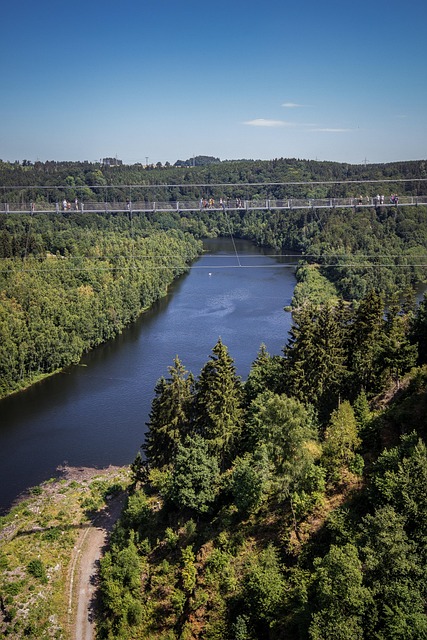Die Wälder von oben shene: Fußgänger-Hängebrücke in Dolní Morava in Tschechien, die zweitlängste der Welt. Bild von Arnold Müller auf Pixabay